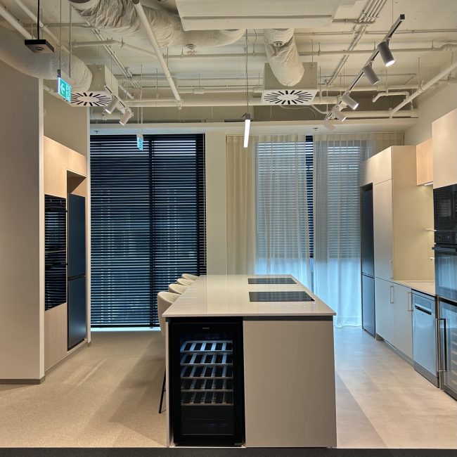 Each zone has its own visual character, clearly communicating the brand’s identity — while both spaces can be opened up and combined for presentations, meetings, social media shoots, or simply a quiet coffee and some work.